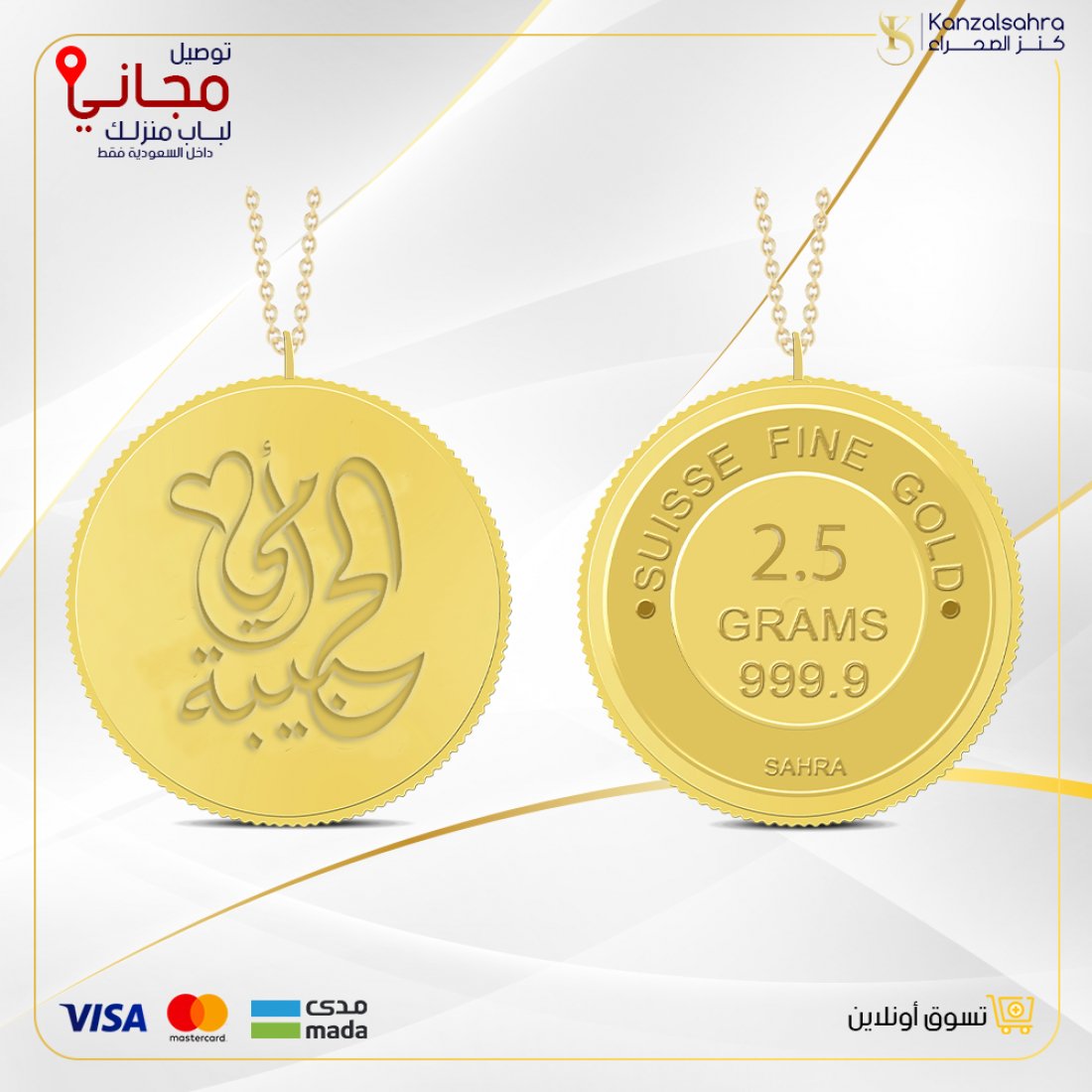 يمكنك الآن شراء سبيكة ذهب دائري 2.5 جرام عيار 24 قيراط اون لاين من متجرنا كنز الصحراء للذهب والمجوهرات ، لتصلك السبيكة عبر شحن آمن و بأسرع وقت إلى جميع مدن المملكة العربية السعودية ، وبضمان مدى الحياة مع تغليف ممتاز .