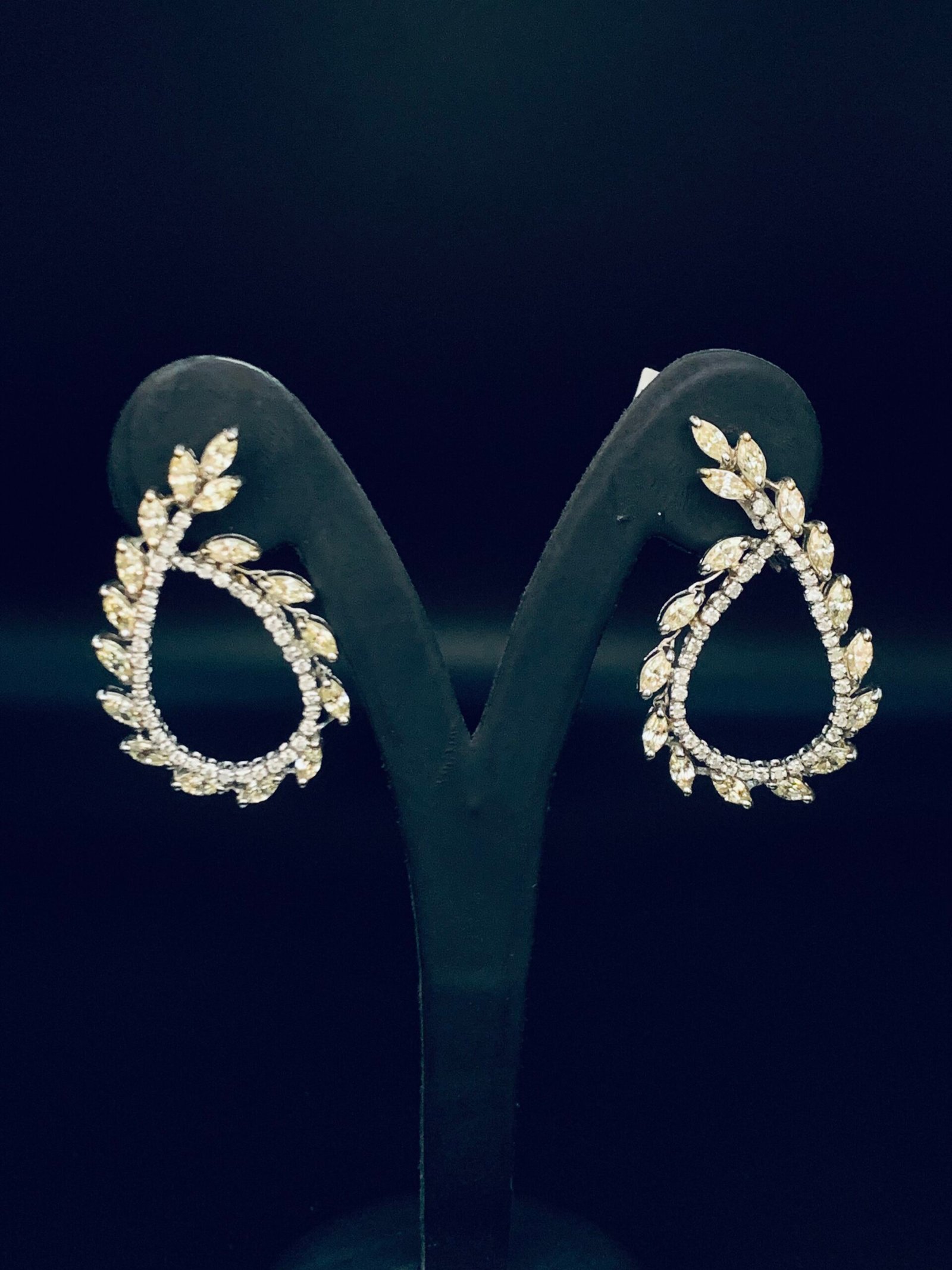 Diamond Earrings on 18 K White Gold With Yellow Stone