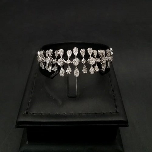 Our store offers you an elegant white gold-plated diamond set that gives you the appearance of a royal look, with a more luxurious and attractive design among the models of diamond sets, a set containing 4 distinct pieces, necklace, bracelet, earrings and ring, all 18 karat available at a special price, please do not hesitate to order it.