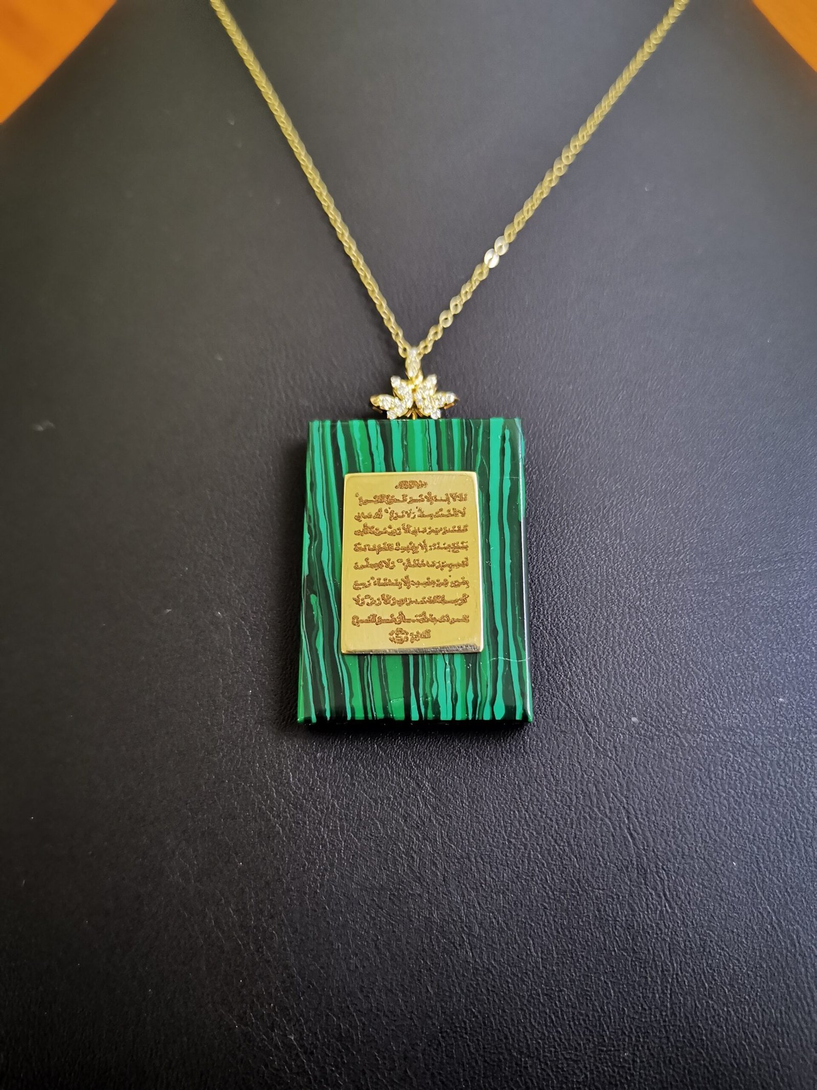 It highlights the beauty and elegance of your neck, adds a touch of beauty and preserves you, as it was designed with Ayat Al-Kursi, drilling that lasts long life and is not affected.